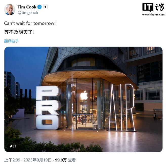 9月19日在家里,技术媒体9to5MAC今天(9月19日)发布了一篇博客文章,报道苹果首席执行官蒂姆·库克(Tim Cook)在X平台上发布了一条推文,共享了一套在印度孟买的Apple BKC零售商店照片,该商店表明,商店正在通过“ Air”主题的“ air the Apake of Apple shore of Atsection of Deways of Desights of Deptions”,该商店通过唯一的“ Pro”来吸引购物者。相关图片如下:除印度外,苹果还将在纽约第五大道上的其他旗舰店推出类似的主题。吸引了大量的Apple粉丝S在清晨排队购买。 iPhone 17和iPhone Air同时预计将满足不同尺寸和定位的不同需求;新的Apple Watch和AirPods还将为用户带来升级和体验的升级。