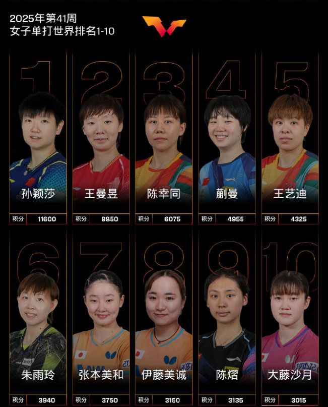 北京时间10月7日,WTT正式发布最新世界排名榜。朱雨玲以3940分女单第一,追平张本美和(3750分)。朱雨玲排在五名国乒选手之前:孙颖哈、王赣榆、陈幸同、蒯曼和王艺迪。事实上,朱雨玲7月15日在美国大满贯夺得女子冠军后,世界排名第六,但欧洲大满贯、横滨锦标赛、澳门锦标赛表现不佳,被张本米-哈姆追平。现在他重回世界第六,也算是时隔84天登上了外展第一的宝座。那场比赛朱雨玲击败了陈幸同,两人都打得不错。比赛结束后,朱雨玲微笑着走向了为他引路的邱一科出租。两人双手颤抖的场景让粉丝落泪。朱雨玲是另一个级别的。天津大学副教授硕士,电子科技大学博士,半导体公司高管,抗癌斗士,朱雨玲工作室负责人等。对乒乓球有着纯粹的热爱。 10月7日,日本媒体《东京体育网》转发了WTT排名中的官方文章,写道:川本宫世界排名跌至第七,美麻第八,大藤三月第十。评论区不少日本球迷向朱雨玲打招呼,也有不看好日本乒乓球队前景的声音:1、我支持朱雨玲。她的打球风格非常聪明。我感觉他几乎每场比赛都能改变技术。虽然这次他输给了陈幸同,但赛后他露出了甜蜜的笑容; 2、朱雨玲是抗癌斗士。几年前,他因治疗癌症从中国国家队退役,随后进入大学任教。他去年搬到了中国澳门,然后又回到了雄鹿e。他卷土重来; 3。大约十年前,朱林,丁宁和刘·什文都活跃在桌上的网球世界中。朱·尤林(Zhu Yuling)是当时世界上第一名的人。时间已经改变。我只能说我很惊讶。 4。朱云努力工作,打乒乓球时可以看到微笑。他真的很喜欢这项运动。希望您能与Sun Yingsha一起玩更多游戏,并注意您的健康。 5。考虑到诸如反癌,Edad和体重之类的问题,朱云在外展中最好是最好的。日本球员不害羞吗? 6.重返国际比赛的条件很残酷,但澳门和中国香港的迁移似乎是一种新的方式。如果有更多的球员,我觉得日本球员将无法进入世界前十名,而日本网球队需要有一种危机感。